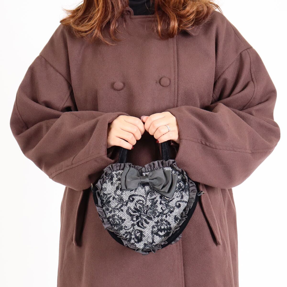 【LA LUICE】ツイードハートリボンバッグ(黒)
